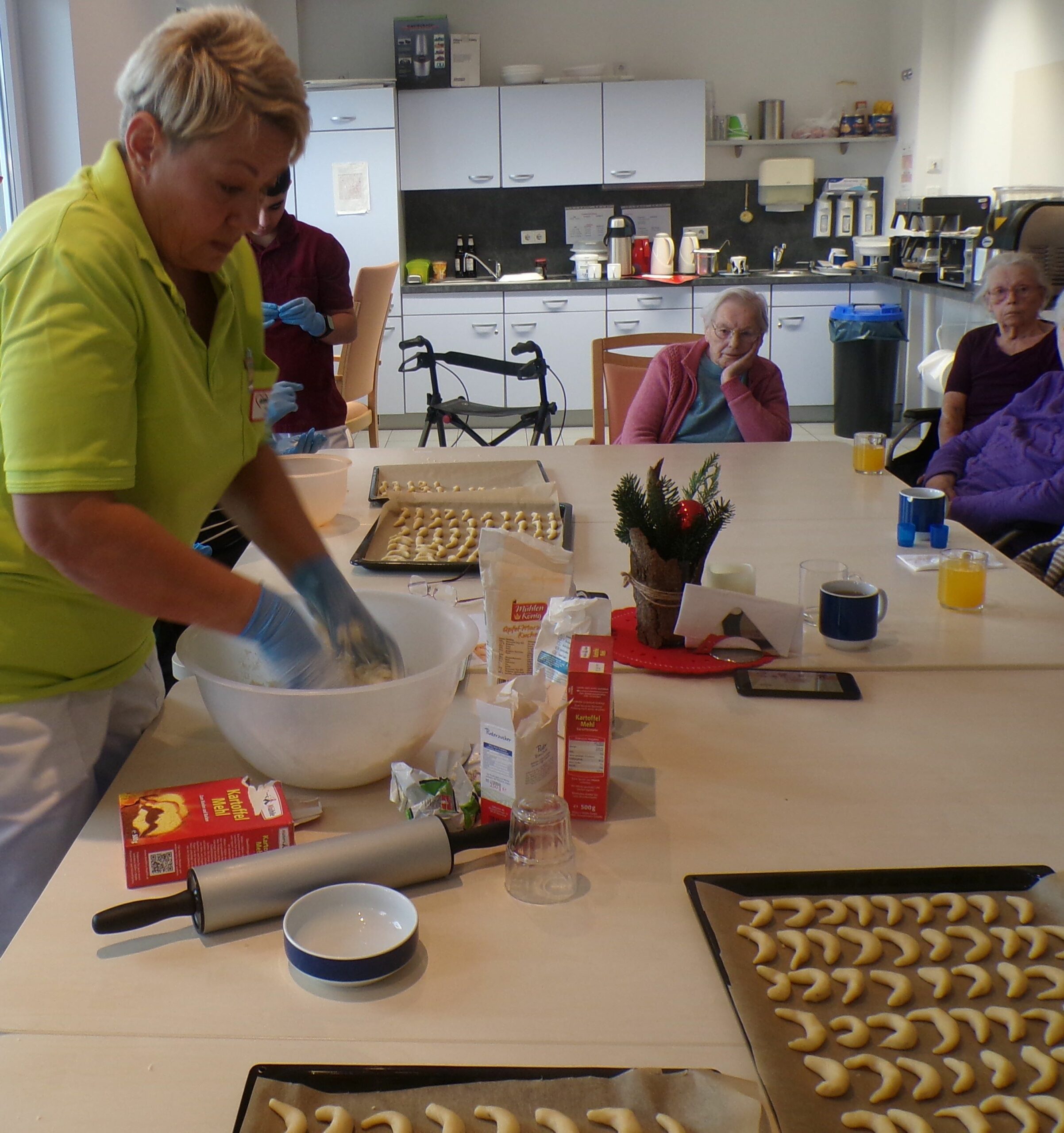 Schon Anfang Dezember 2019 wurden die ersten Butterplätzchen gebacken, die für die Weihnachtsfeier bestimmt waren. Beim selbstgebackenen Stollen konnten unsere Bewohner nicht widerstehen.